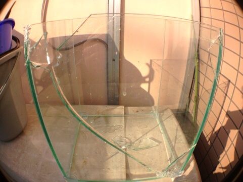 普通に滑ってドーンって…かみさんが部屋の中でコブクロがカバーしている尾崎のI LOVE YOUを聴きながらアイロンかけしていたのですが…割れた水槽を見ながら虚しく聴こえます。