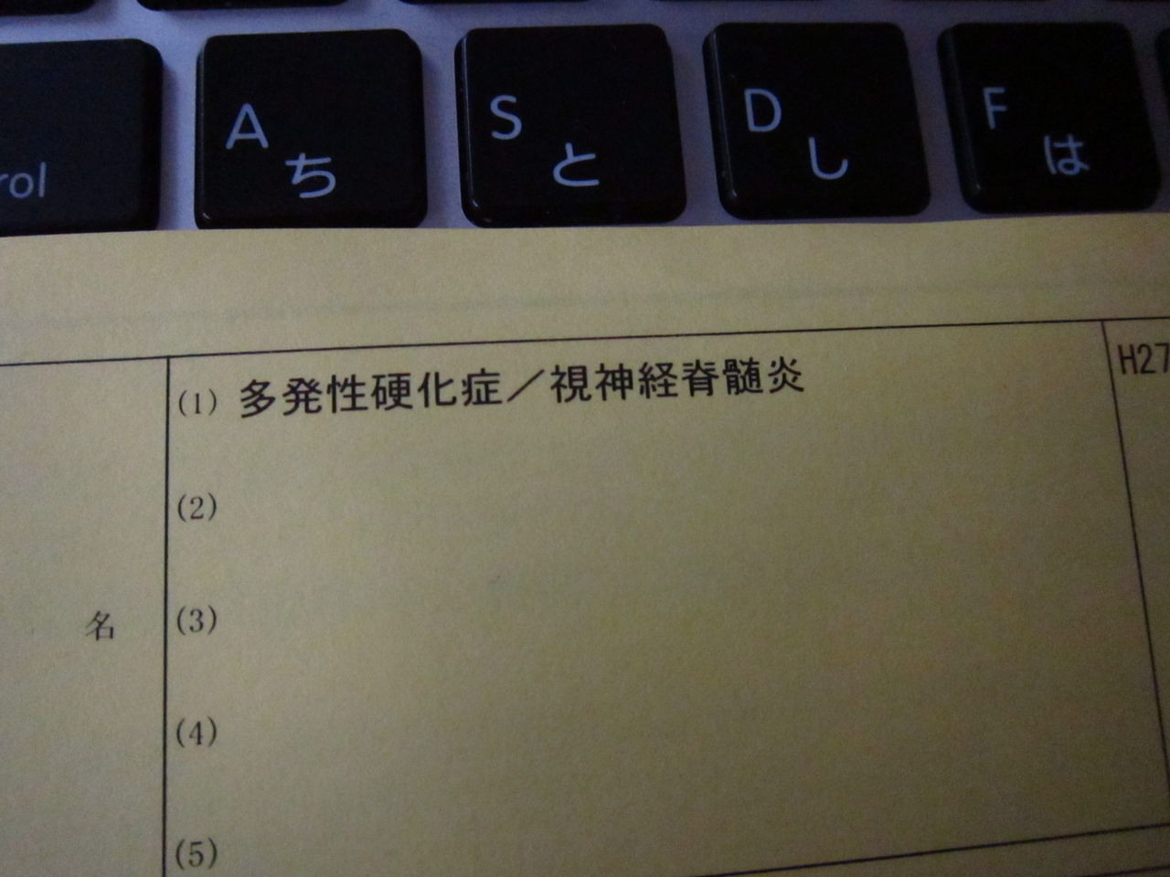 今までは多発性硬化症として受給者証使っていましたが今回から視神経脊髄炎も一緒に記載されるようになり多発性硬化症と視神経脊髄炎 両方の病名が出るようになっています